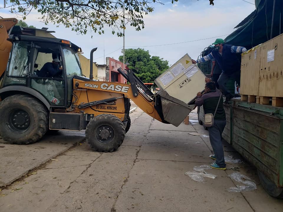 Nuevamente desde el Sector de Obras y Servicios Públicos del Municipio de nuestra ciudad,se colaboró en esta instancia para bajar el equipamiento e instalarlo .