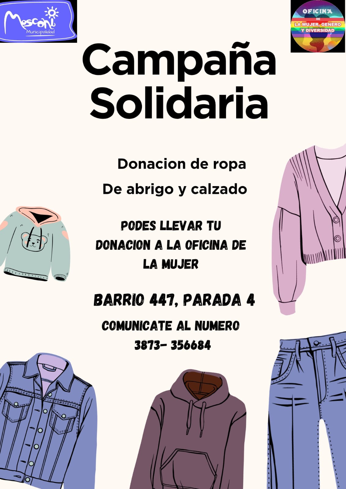 La misma se realiza desde la oficina de la Mujer, Género y Diversidad a cargo de sus titular Micaela Morales. Lo recaudado será entregado al área de Desarrollo Humano de nuestro Municipio.