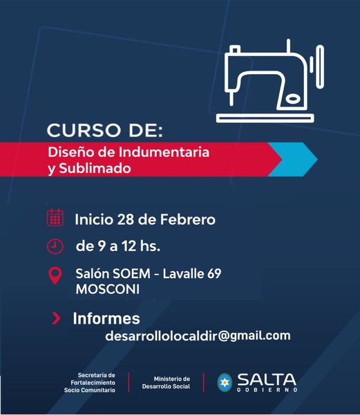 Desde la Dirección de Empleo y Capacitación, se informa que se realizará el curso de Diseño de Indumentaria y Sublimado. El mismo es totalmente gratuito.