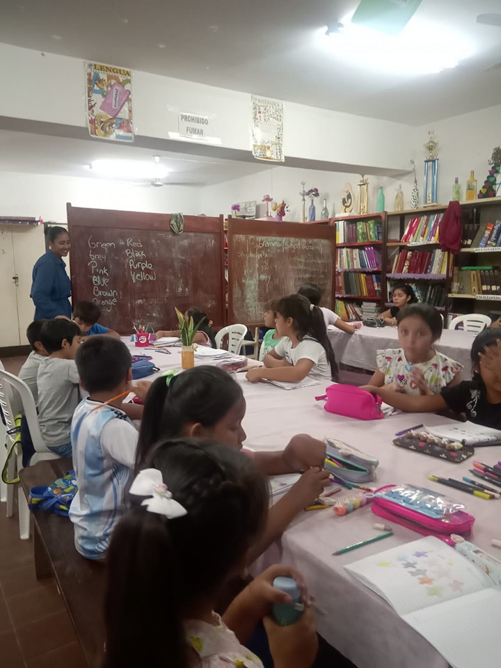 La Encargada de la Biblioteca Municipal, informa que continúan con el taller de Inglés, para niños de 6 a 14 años. El mismo se dicta en el horario de 09:00 a 10:30 hs, en la Biblioteca Municipal Eva Perón.