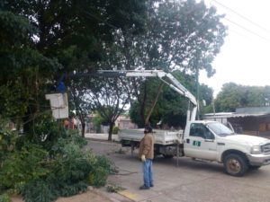 En este contexto el Supervisor de Obras Públicas Sr. Alvarez, de acuerdo a la agenda de trabajo en esta cartera, señaló que se va a continuar también con la poda de árboles, que en el día de la fecha se efectivizó sobre Avenida Rudeciendo Alvarado.