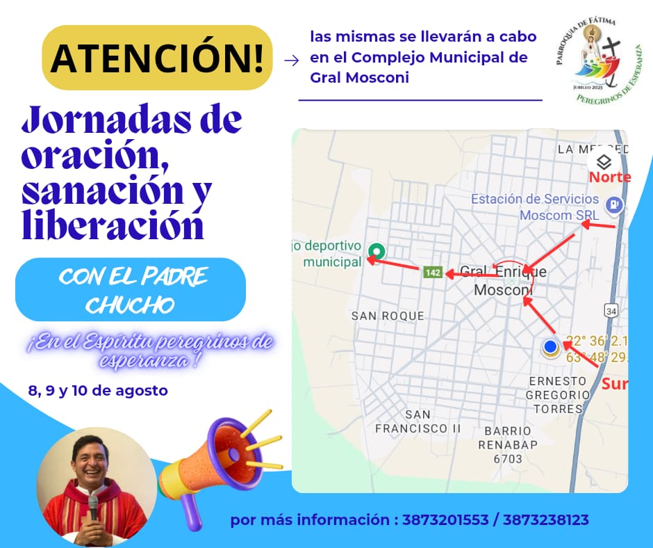 General Mosconi: Desde este viernes Jornadas de Oración, Sanación y Liberación con el Padre Jesús Orijuela «El querido Padre Chucho» en el Complejo Deportivo Municipal.