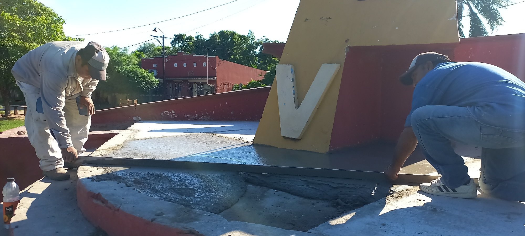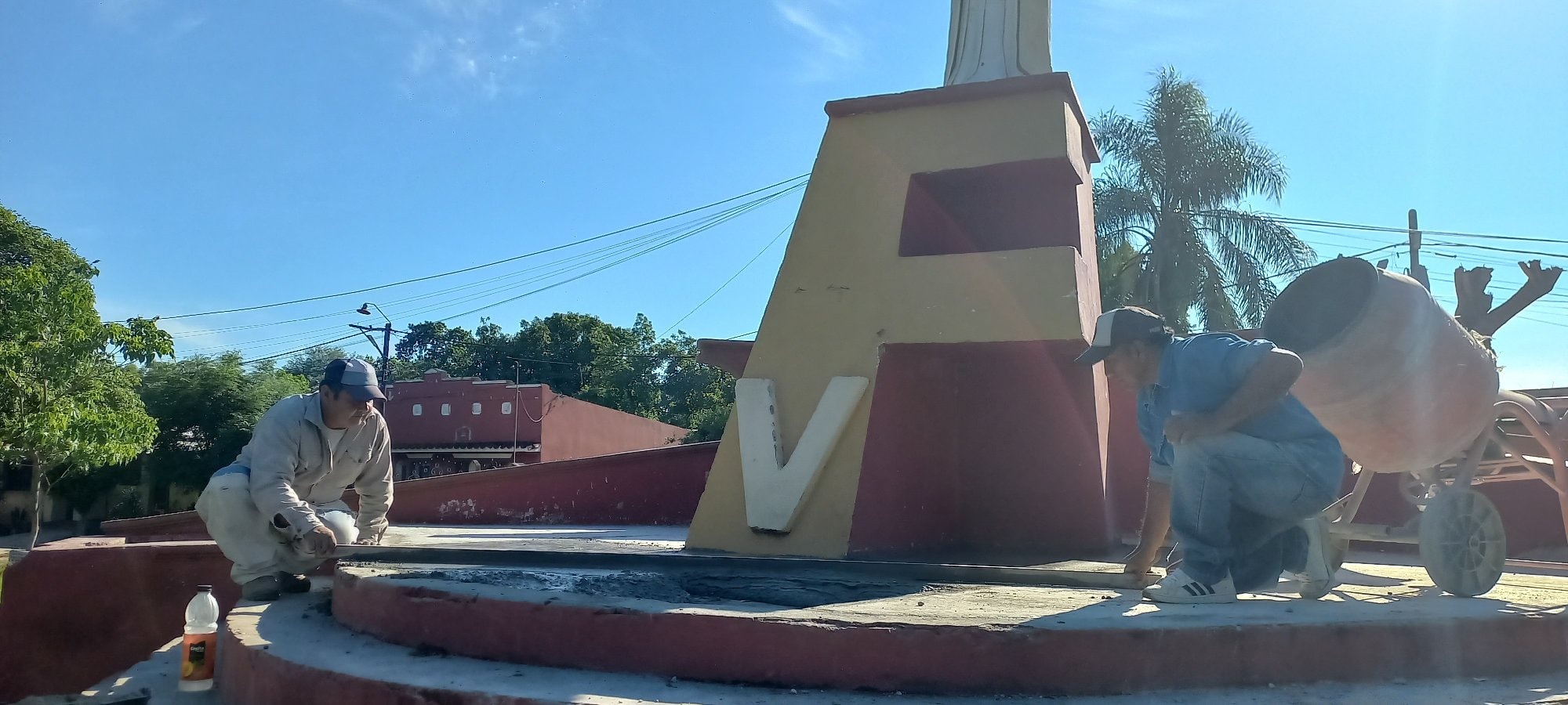 Personal de Obras  y Servicios Públicos de nuestro Municipio, trabaja en la  mañana de hoy, en la remodelación de la plazoleta del Barrio Fátima.