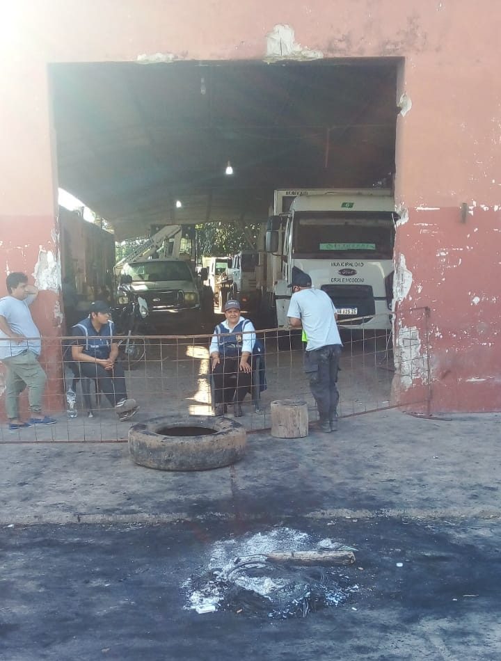 Desde las 02:00 de la mañana empleados del Sector Tránsito del municipio se apostaron en el ingreso al canchón, donde está el parque automotor. Solicitan se haga el mismo arreglo que en el canchón con Obras Públicas.