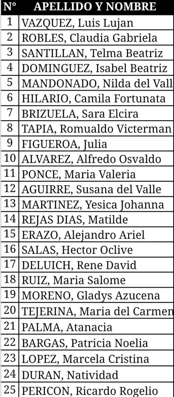 A continuación se adjunta nomina de beneficiados