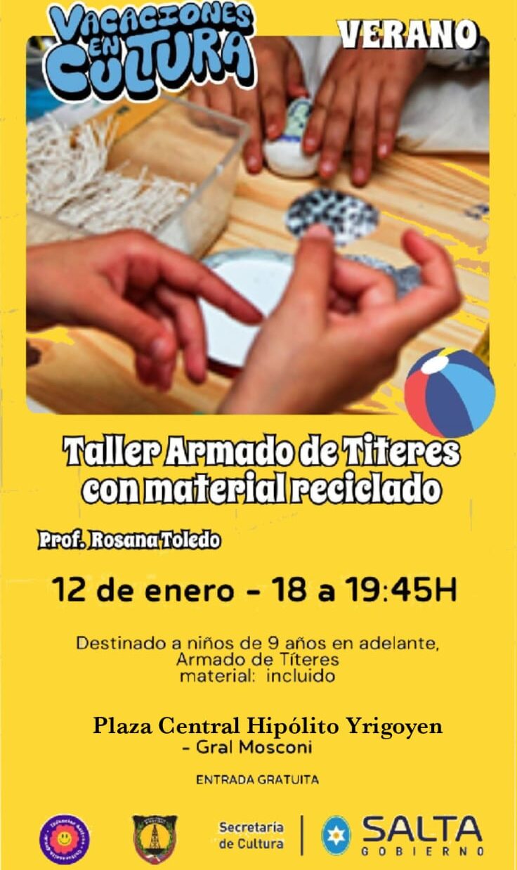 General Mosconi: Este viernes taller y teatro de títeres en la Plaza Central.