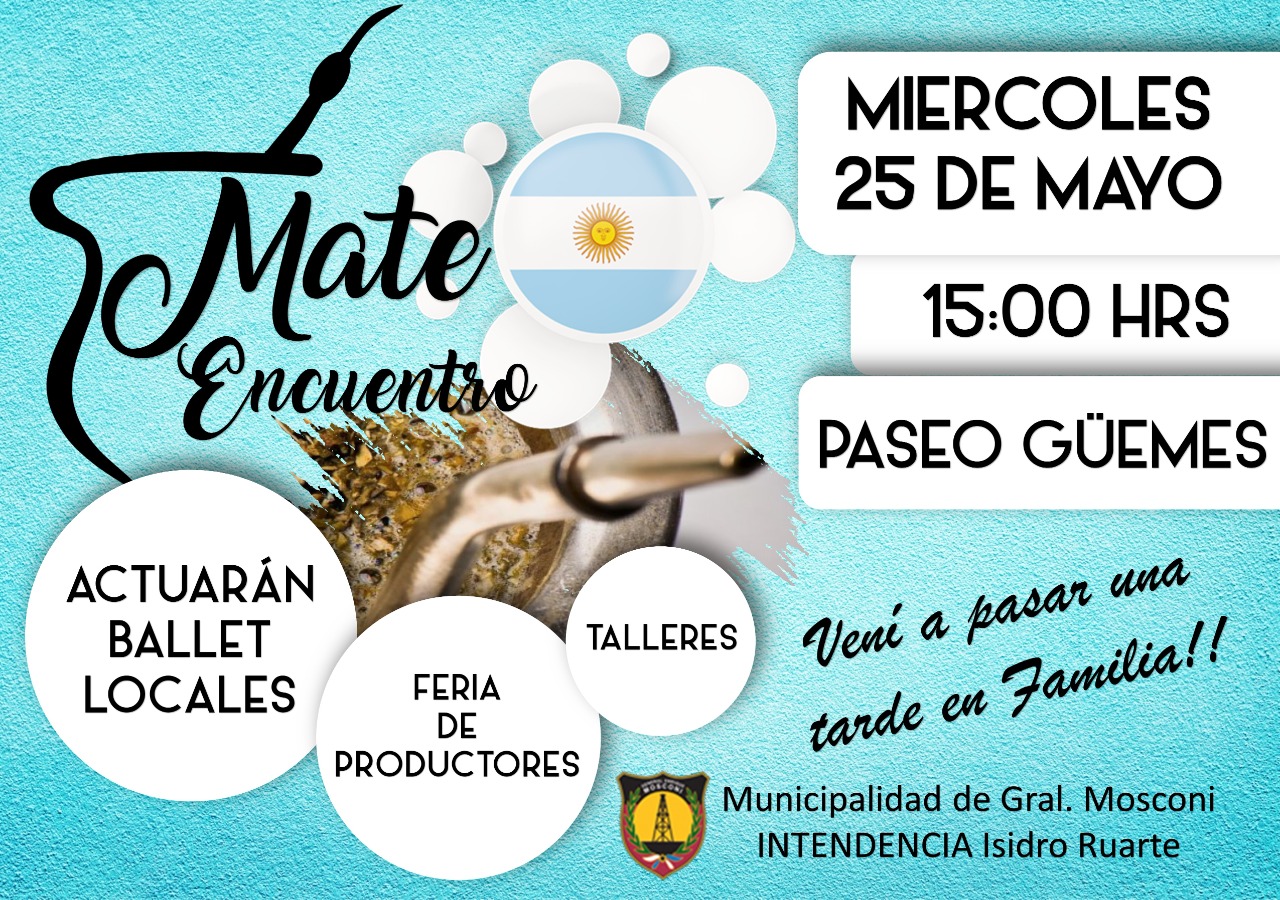 GENERAL MOSCONI: MAÑANA MATE ENCUENTRO EN EL PASEO GÜEMES.