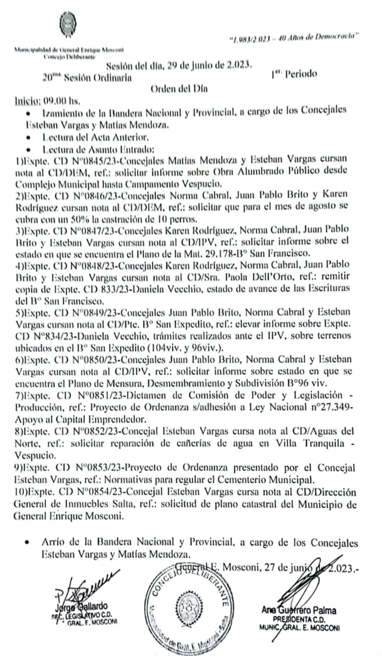 Mañana sesionará el Concejo Deliberante de nuestra ciudad. Será la última del mes hasta el receso.