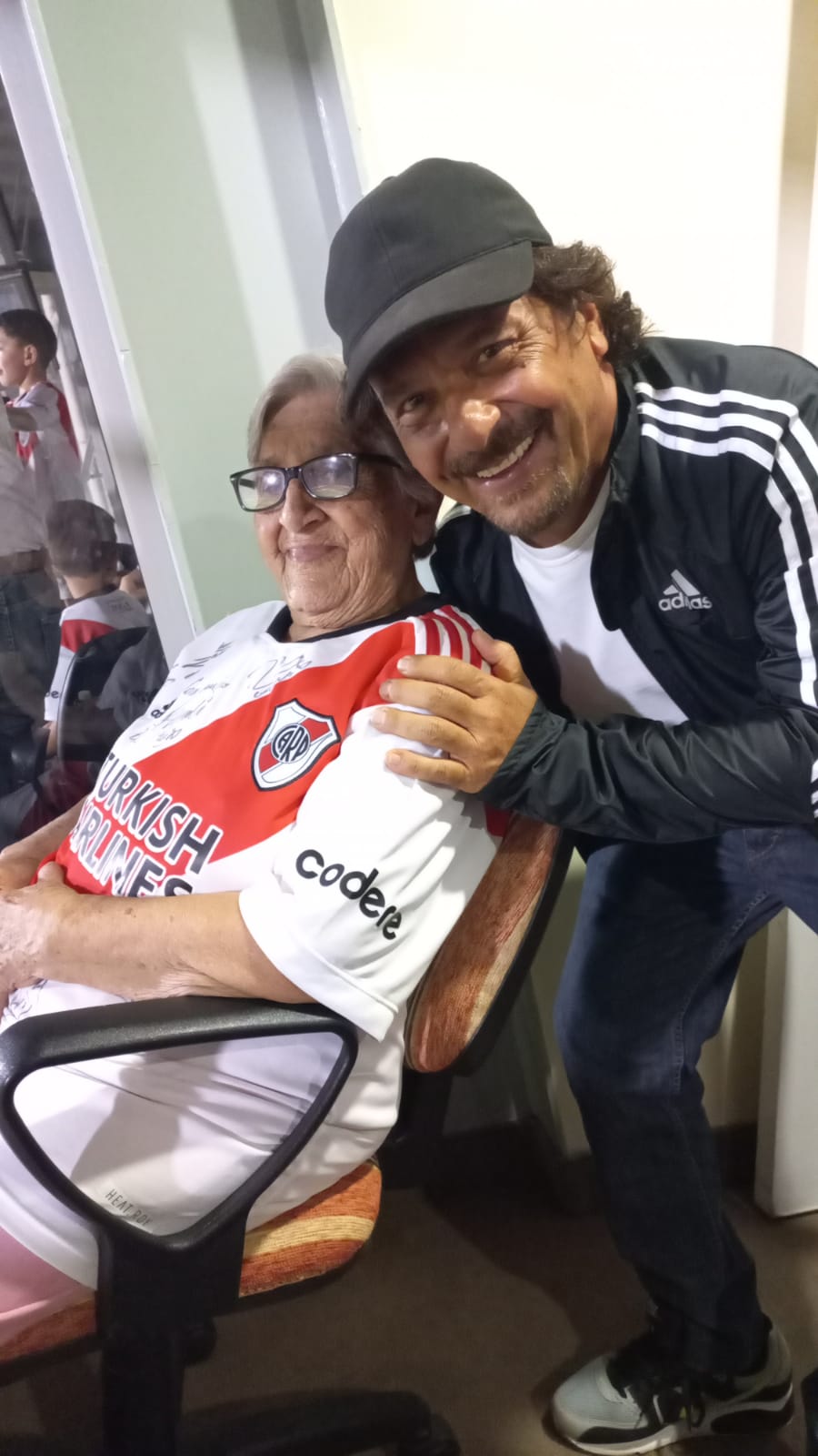 Doña Dora Montenegro de Velázquez, cumplió su sueño: Conocer al DT de River, Marcelo Gallardo y a los jugadores de su equipo favorito.