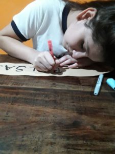 En el Barrio 447 Viviendas de nuestra ciudad, la Familia Valenzuela acompañó a su hija Ariadna Valenzuela Diez que asiste a la Escuela N°4496 «Lilia C. de Mariño» de nuestra ciudad en un proyecto que tenía como tema principal, realizar un trabajo sobre el medio ambiente.