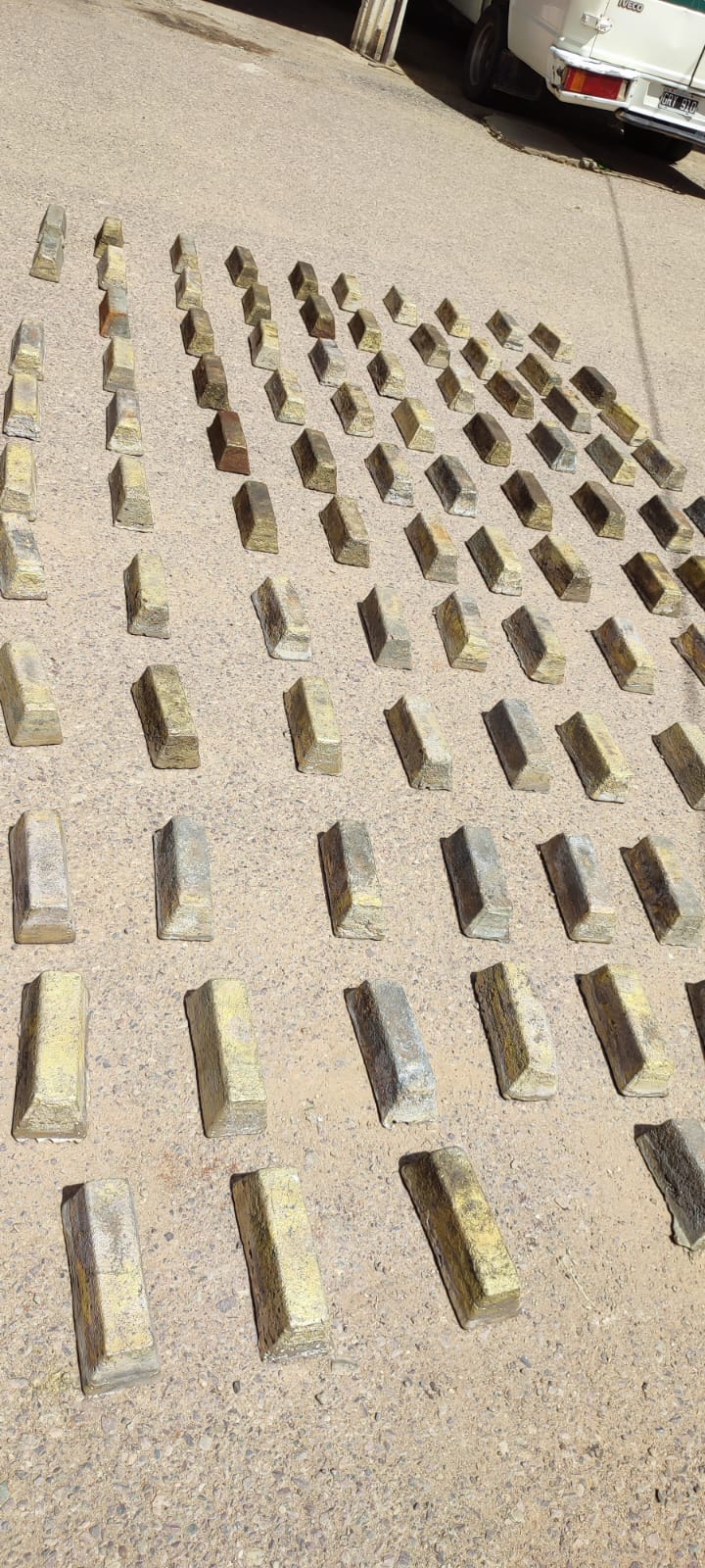 Los gendarmes decomisaron 1.030 kilos de lingotes de bronce que eran trasladados por personas de manera sospechosa desde el interior de un galpón hacia el exterior.