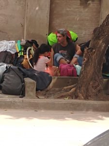 El lunes pasado en horas de la mañana y mientras había una extensa fila sobre la calle  Cornejo , se detuvo un grupo de personas( artistas que deambulan  por las calles )cinco en total : cuatro mayores  y una niña de unos 6 años aproximadamente , uno de ellos con guitarra en mano habló a los presentes  contándoles  que no tenían donde estar , que la cuarentena los encontró en el norte y como  no cuentan con subsidios intentan  ganarse la vida  de otra manera.