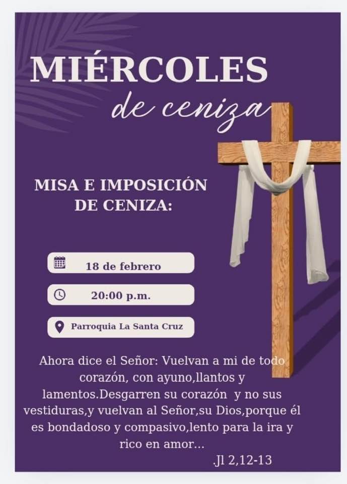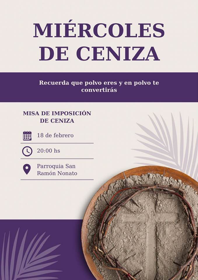 Se celebra cuarenta días antes del Jueves santo. La ceniza, cuya imposición constituye el rito característico de esta celebración litúrgica, se obtiene de la incineración de los ramos bendecidos en el Domingo de Ramos del año litúrgico anterior.
