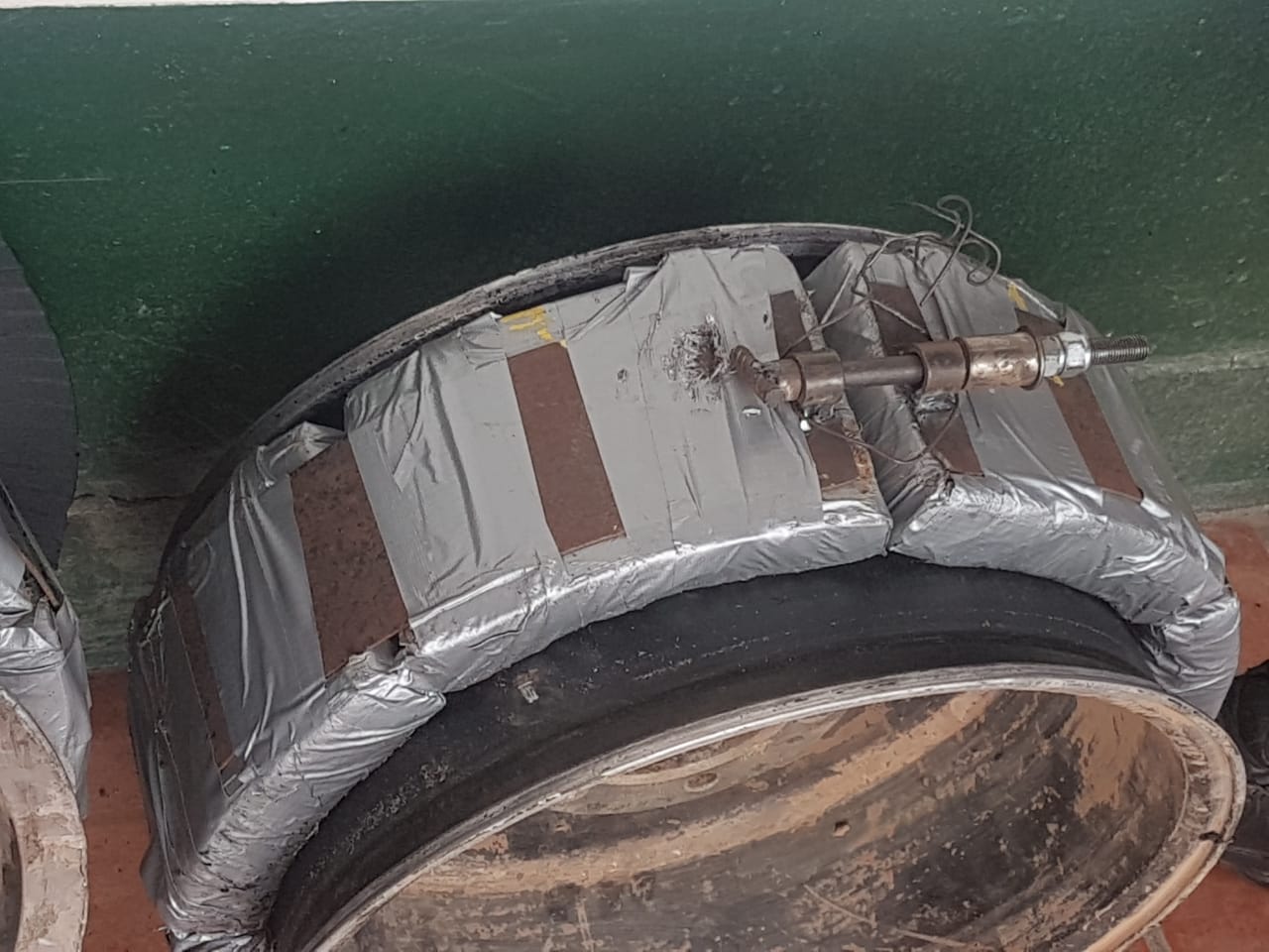 Al momento de la inspección, los funcionarios observaron anomalías en los neumáticos del rodado con lo que procedieron a desarmar las cubiertas en donde hallaron que las mismas poseían un sistema de encastre con siete paquetes rectangulares cada uno que contenían una sustancia blanca.