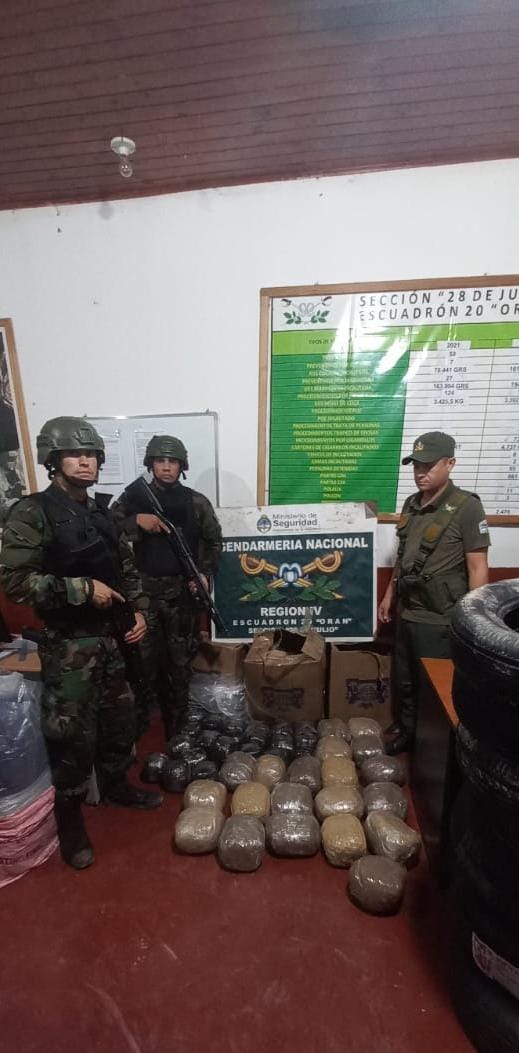 Unos 6 kilos 753 gramos de “cannabis sativa” fueron descubiertos dentro de una cubierta trasladada por un ciudadano en la ciudad de Aguas Blancas. Quedó detenido.
