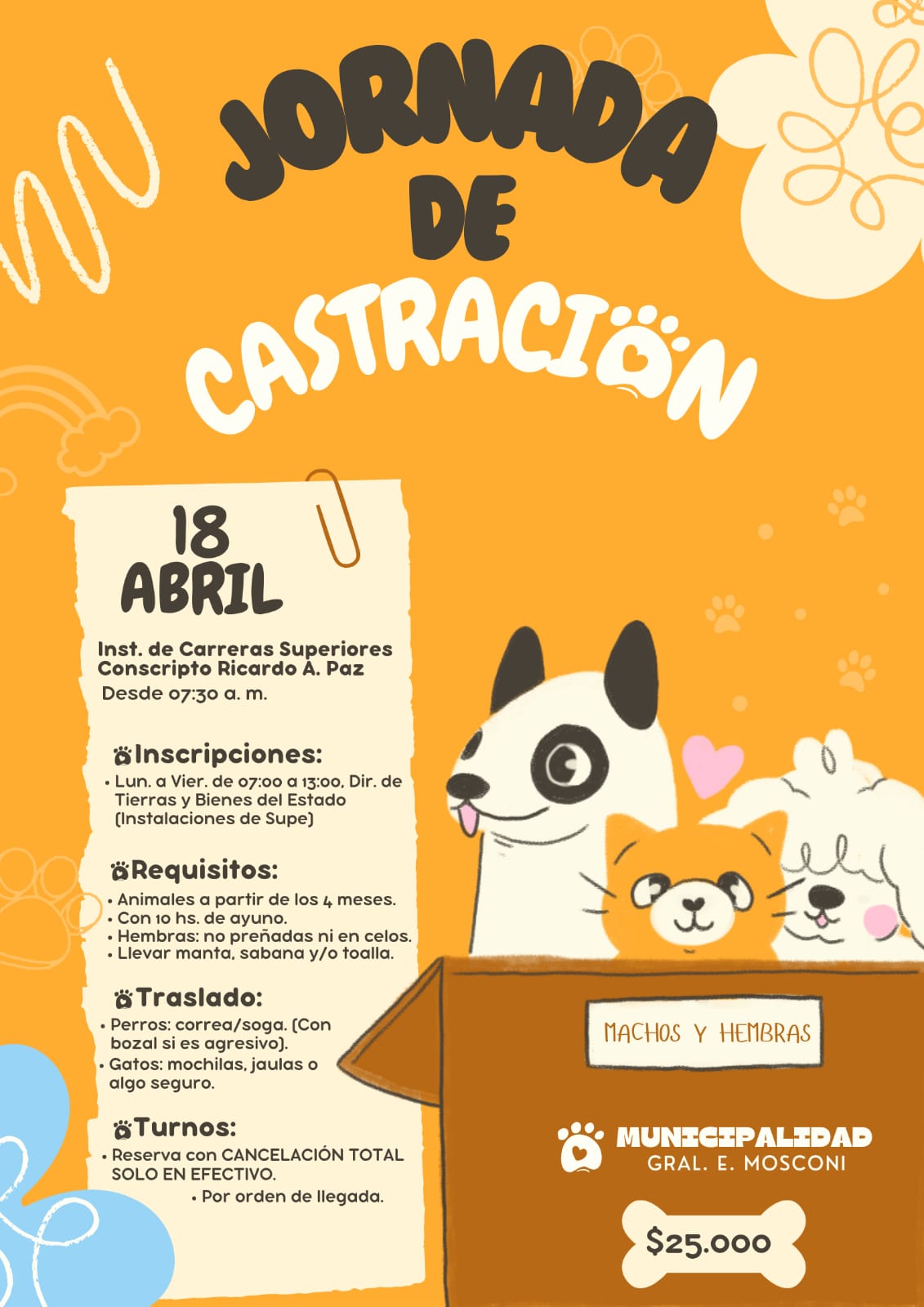 General Mosconi: Nueva jornada de castración de mascotas.