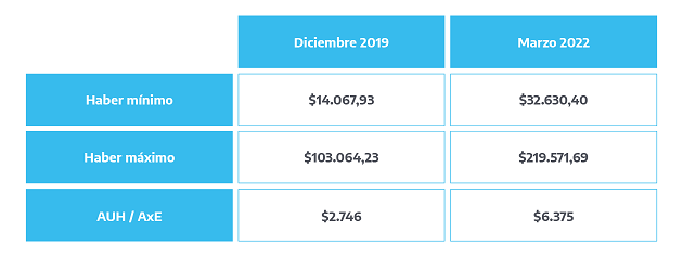 A partir de marzo, el haber mínimo para las jubilaciones y pensiones será de $32.630 mientras que la Asignación Universal por Hija/o y por Embarazo aumentarán a $6.375. De esta forma, desde diciembre de 2019 a marzo de 2022, la jubilación y la pensión mínima aumentaron de $14.067 a $32.630 y la Asignación Universal por Hija/o y por Embarazo de $2.746 a $6.375.