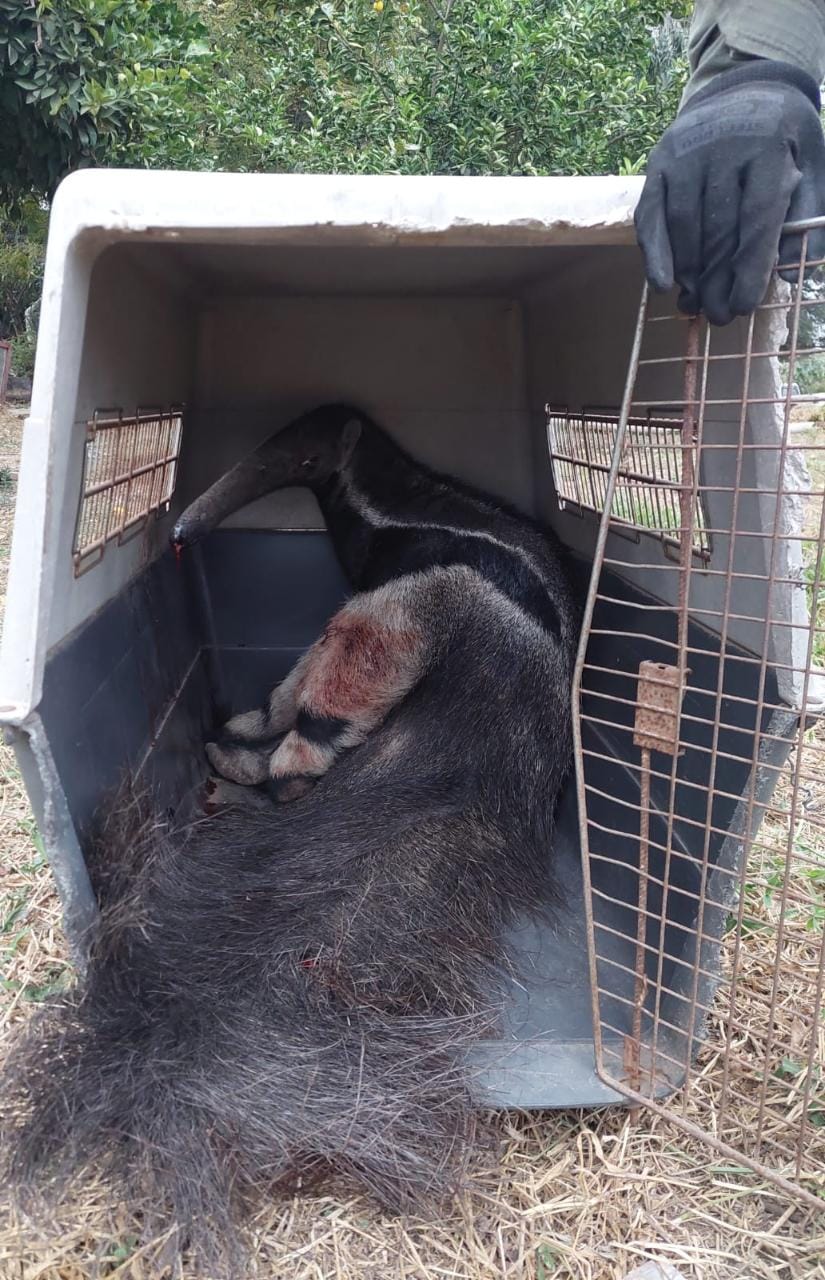 Efectivos de la Sección “Senda Hachada” dependiente del Escuadrón 52 “Tartagal” fueron alertados por transeúntes que un oso hormiguero se encontraba herido sobre la Ruta Nacional N° 34 a la altura del kilómetro 1.373.