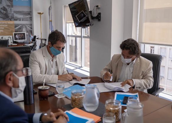 En reunión con el presidente del Ente Nacional de Obras Hídricas y de Saneamiento, Enrique Cresto, el gobernador Gustavo Sáenz firmó el primer convenio específico para la ejecución de la red de agua potable en Santa María, Municipio de Santa Victoria Este.