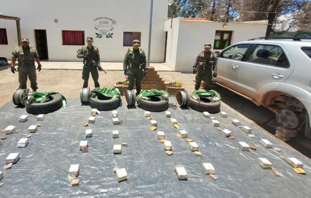 Adaptaron 43 kilos de cocaína en los neumáticos de una camioneta.