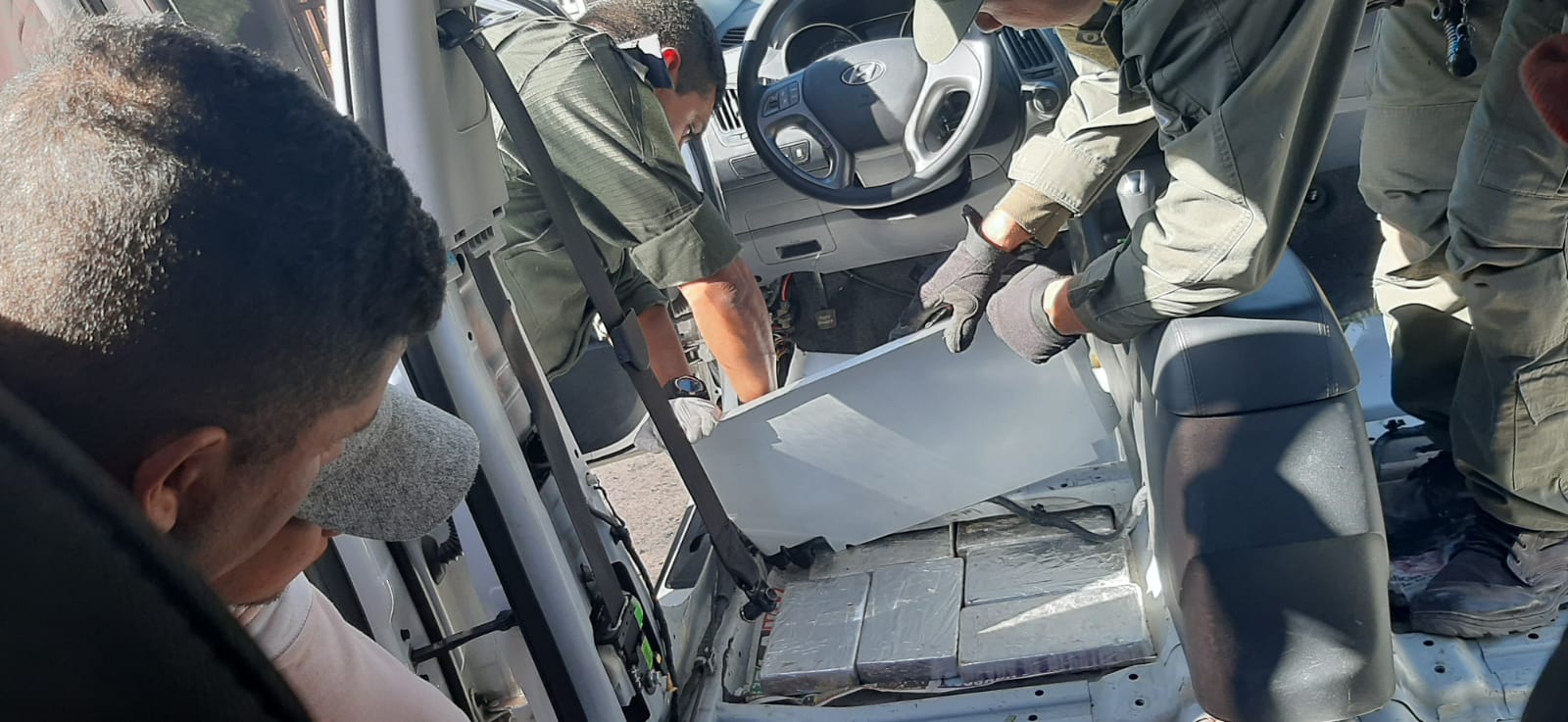 Al requisar el rodado, los gendarmes observaron irregularidades en los burletes de la puerta delantera, como así también un pegamento en la alfombra, lo que derivó en profundizar la inspección, advirtiendo la presencia de un chapón sujeto por tornillos a lo largo del chasis.