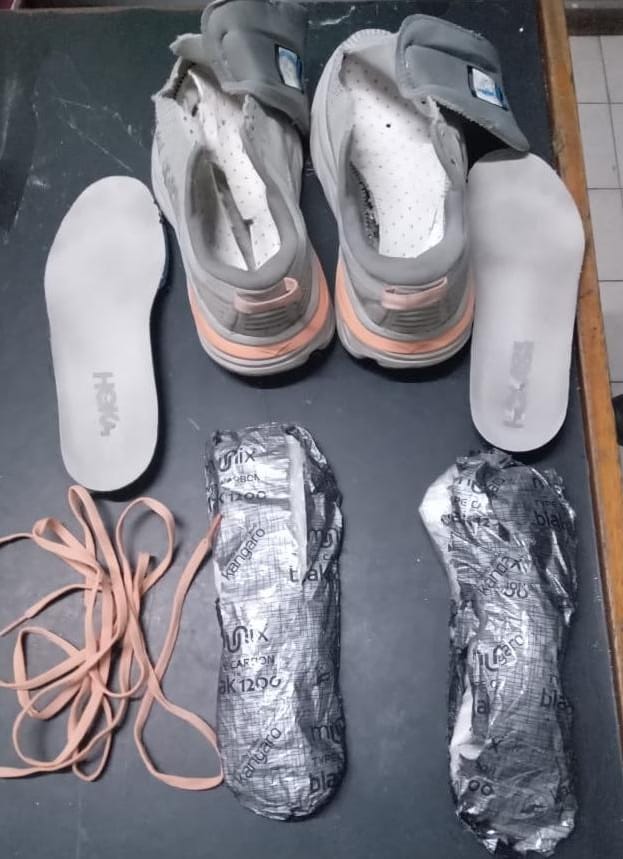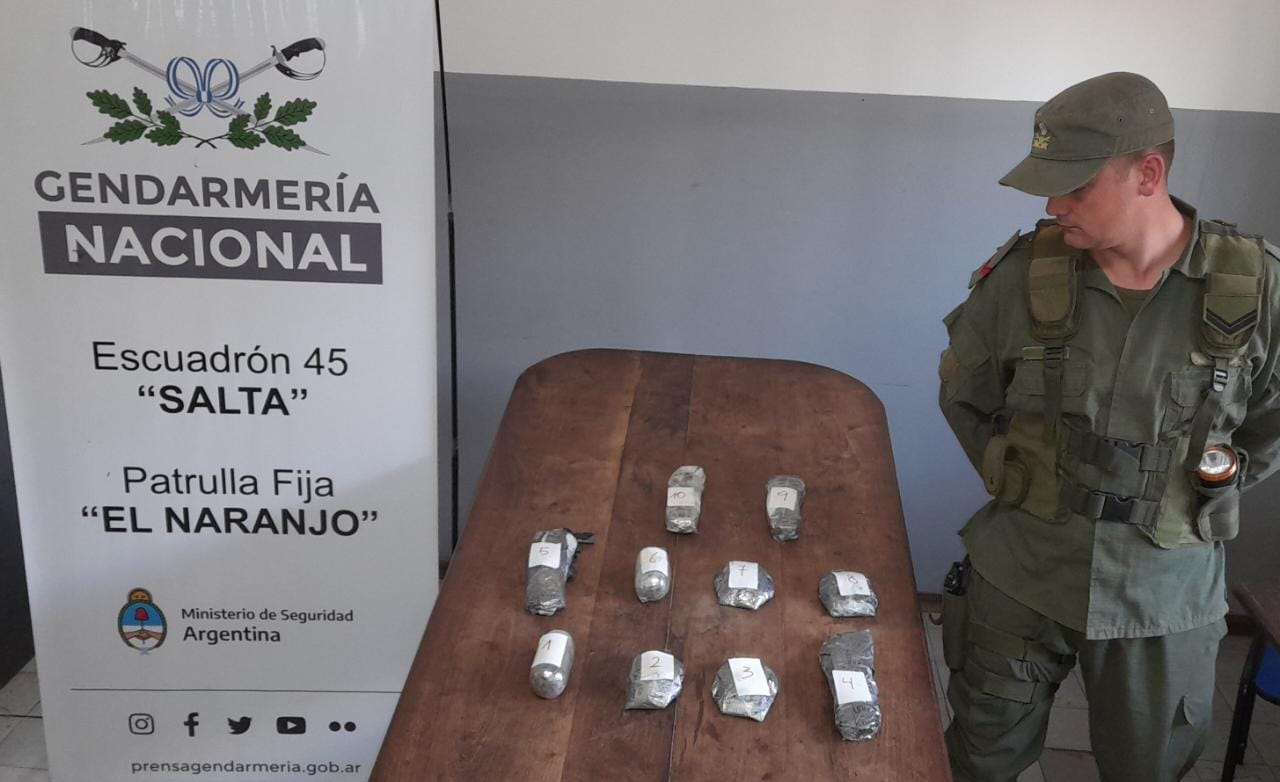 Ante ese indicio, se realizó una requisa respetando el pudor de las personas, detectando un envoltorio en el asiento, otro dentro de un bolso y ocho paquetes que estaban distribuidos en las prendas de vestir y los calzados de las involucradas.