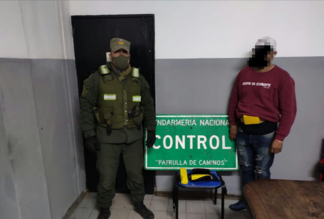 Inmediatamente, los gendarmes efectuaron una requisa y detectaron una faja que sostenía un paquete rectangular en la cintura del involucrado. También, hallaron otro envoltorio con las mismas características en una riñonera, y un tercer paquete entre la pared y el respaldo de un asiento sin ocupante.