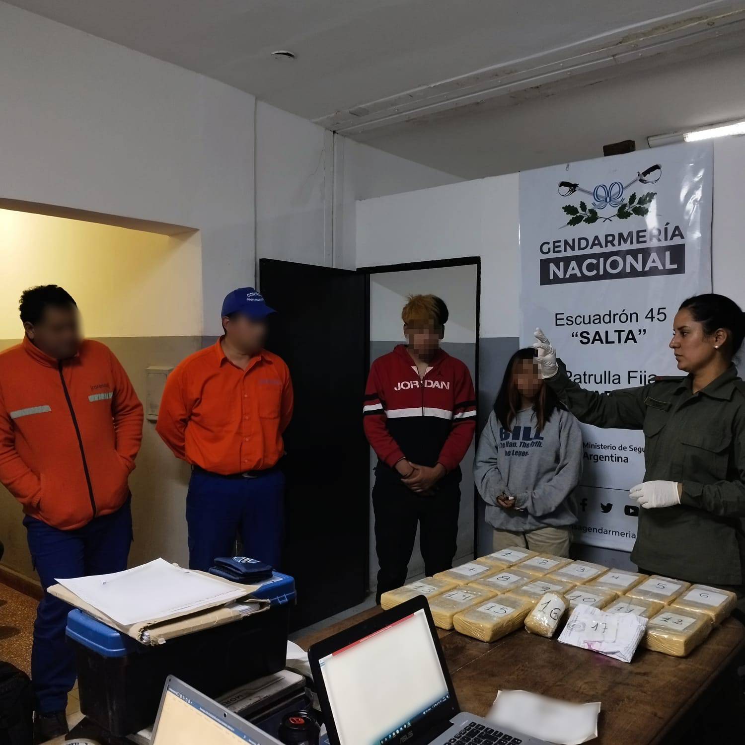 Integrantes de la Patrulla Fija “El Naranjo”, que depende del Escuadrón 45 “Salta”, se encontraban desplegados sobre el kilómetro 1.438 de la Ruta Nacional N° 9, cuando procedieron a inspeccionar un colectivo de larga distancia procedente de la ciudad salteña de Orán, con destino final la Ciudad Autónoma de Buenos Aires.