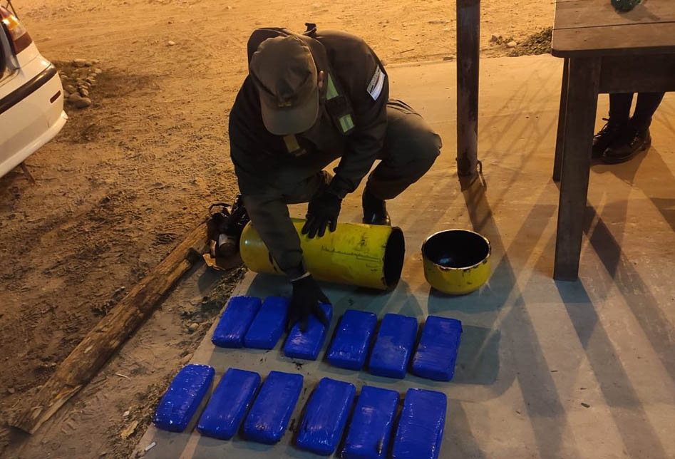 En Salvador Mazza, los gendarmes detectaron estupefaciente acondicionado en un tubo de gas que se encontraba en un vehículo abandonado.
