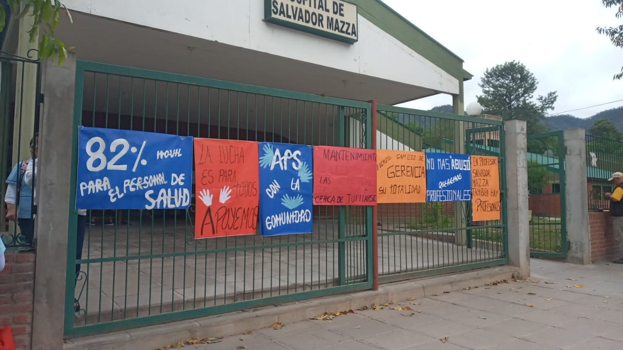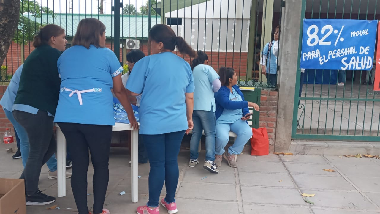 Empleados del Centro de Salud realizan una sentada afuera del nosocomio solicitando un cambio en la gerencia. Solicitan además el pago del 82% móvil al momento de la jubilación.