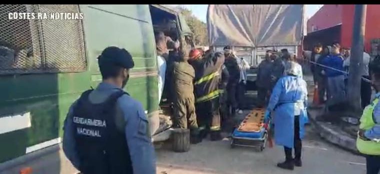 El gendarme atrapado entre los hierros con una de sus piernas aprisionada en el torpedo del rodado, solo sufrió golpes con heridas producto del fuerte impacto contra el parabrisas.