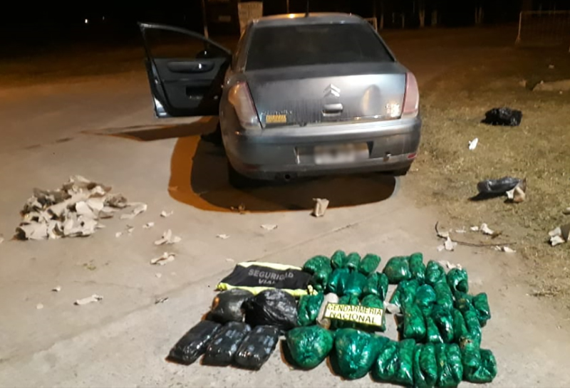 El otro operativo se realizó cerca de la media noche, momento en que detectaron que el conductor de un automóvil Citroën transportaba bultos con más de 12 kilos de la mencionada mercadería.