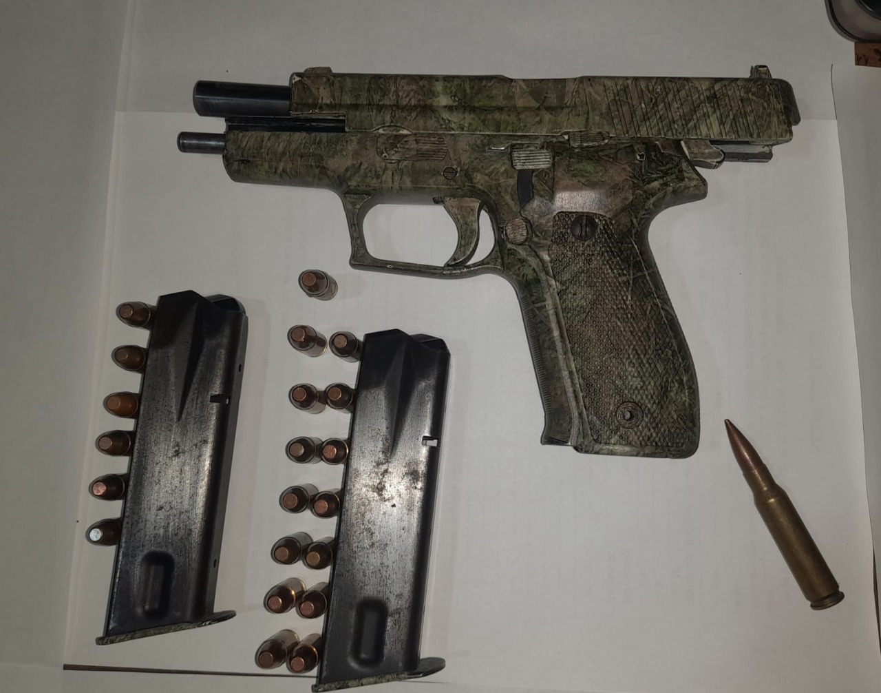 características del vehículo denunciado, los intensificaron el patrullaje logrando ubicarlo. Tras el registro sobre el vehículo y los elementos que llevaba el conductor, detectaron en el interior de una riñonera dos cargadores con cartuchos y una pistola de la que no poseía la documentación para su tenencia y portación.