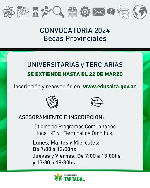 Hasta el 22 de marzo se extienden las inscripciones a Becas Provinciales