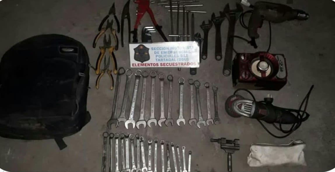 Momentos después se tomó conocimiento que las herramientas habían sido sustraídas momentos antes desde un taller de la zona.