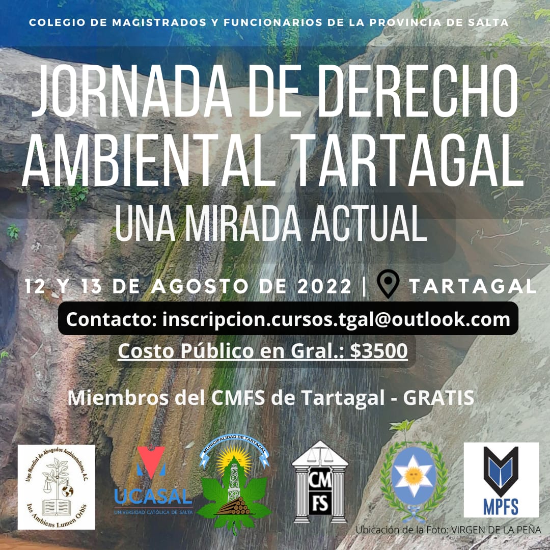 Este viernes comenzará a desarrollarse en Tartagal la » Jornada de Derecho Ambiental, Una mirada actual». Las mismas se realizarán los días 12 y 13 de agosto en el Centro Cultural Tartagal y están organizadas por la Delegación Tartagal del Colegio de Magistrados y Funcionarios de Salta.