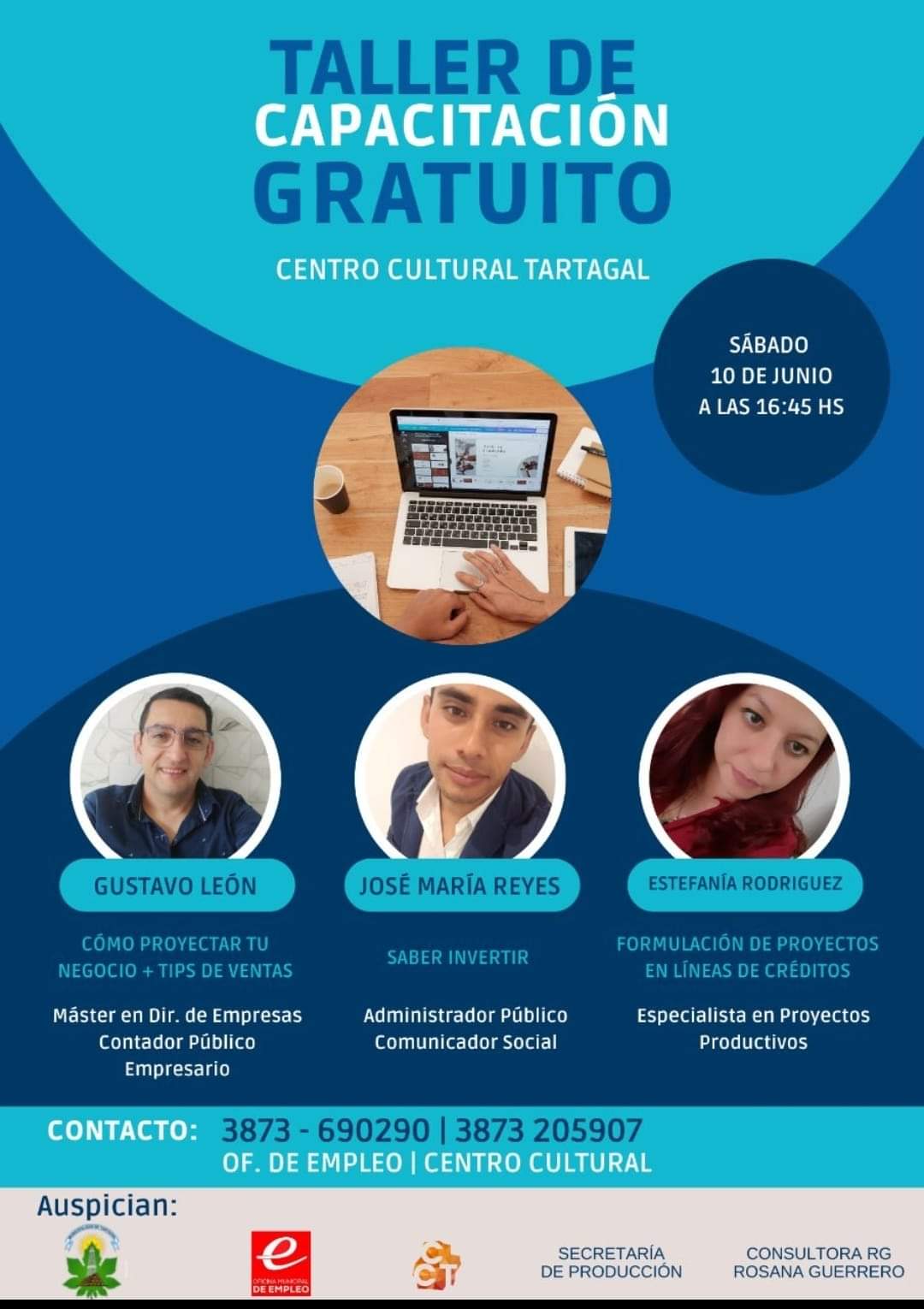 Este sábado 10 de Junio se llevará a cabo un Taller de Capacitación gratuito organizado por la Oficina de Empleo del Municipio de la ciudad de Tartagal.