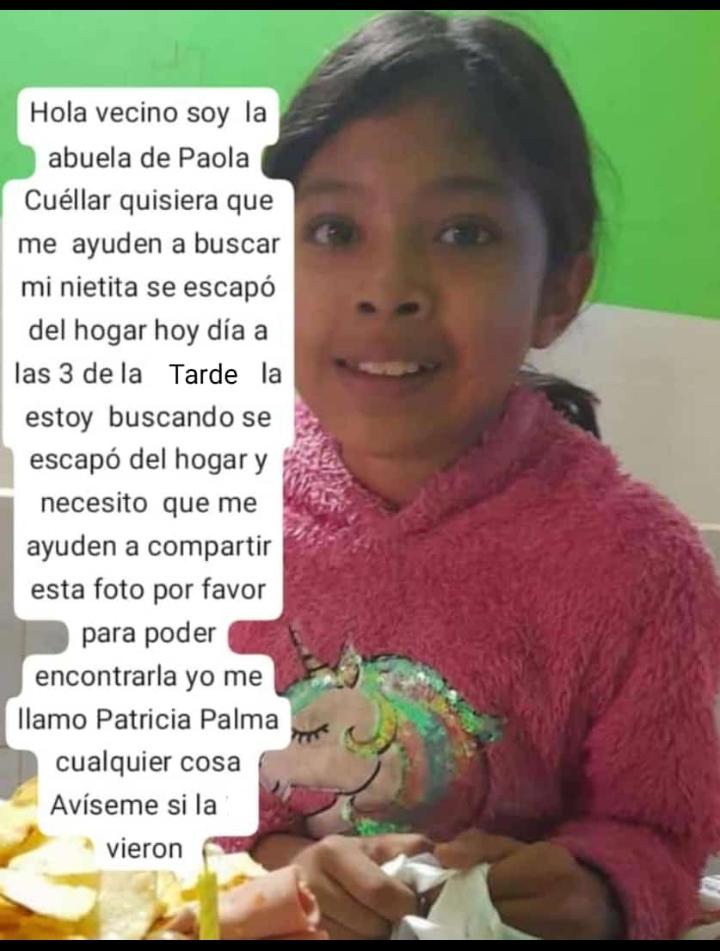 Se trata de la pequeña Paola de aproximadamente 11 años, a quien buscan desde la tarde de ayer.